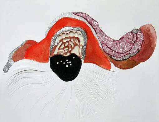 Although working in traditional media like drawing and painting, the artists in GROWTH fall in between abstract and representational art: there are still realistic references present, but they use their artistic freedom to create their own strange worlds. They give rise to distorted, organic yet confident shapes, reaching the twilight zone where beauty meets ugliness and repulsion and attraction go hand in hand. At the base of these amorphous forms lie struggles from within the human psyche, personal stories, myths, fairy-tales, fantasy and sexuality.