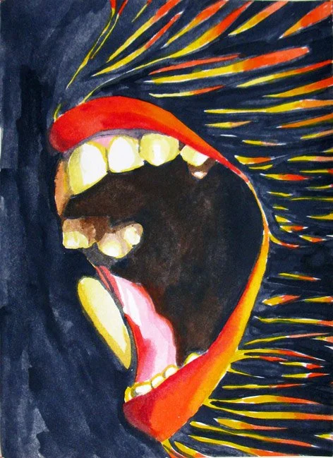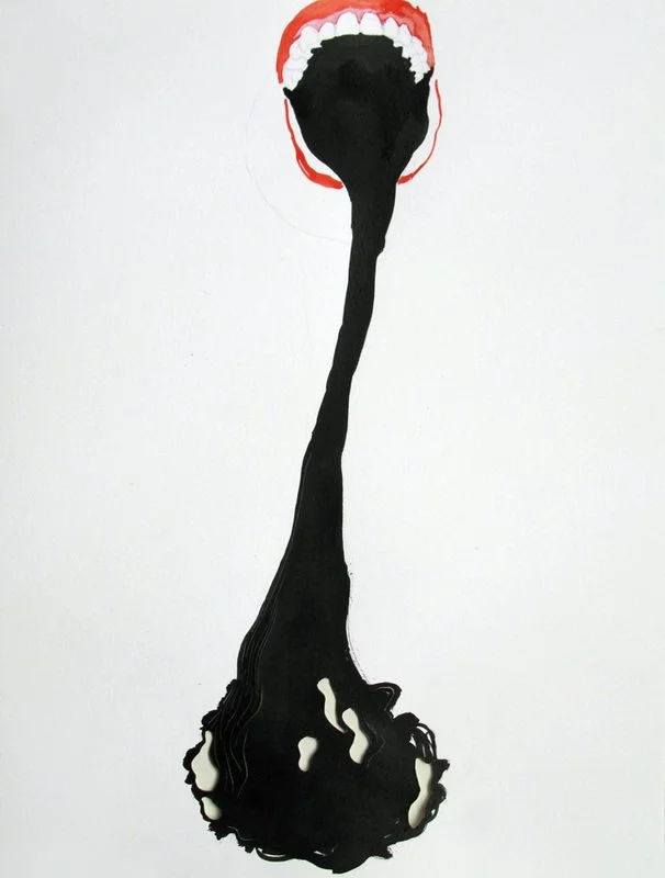 A similar idea is explored by Angela Smith who looks to expose the unsaid, the hidden and the awkward, that what we learn to mask by protective, but inhibiting layers. She opens up the internal psyche, promoting honesty and true interaction, but revealing almost alien like creatures that at the same time intrigue and frighten us. Angela pours the paint onto the canvas, letting it run to create sinuous shapes, sags, wrinkles and furrows, an unpredictable process which matches the fragile vulnerability of her 'Creatures'.